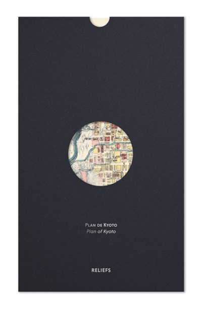 Cette gravure sur bois anonyme de 1864 représente la capitale Kyoto et ses environs immédiats dans le style classique de la période Edo, qui a commencé vers 1600 et s’est terminée en 1868 avec la restauration Meiji. Cette carte est orientée nord-sud en raison de la situation du Palais impérial au nord de la ville. Elle nous offre un aperçu fidèle de Kyoto, de sa disposition orthogonale et de son bâti, fait de machi, blocs d’habitation de 120 m de côté. On peut considérer cette oeuvre anonyme comme l’un des premiers exemples de l’âge d’or de la cartographie Japonaise.