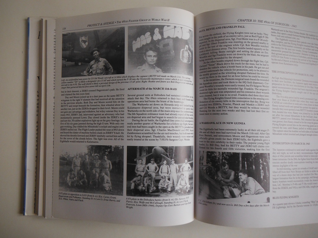 With the 50th Anniversary of Victory in World War II comes PROTECT & AVENGE: The 49th Fighter Group in World War II. After six years of research, author and illustrator S.W. Ferguson, Along with 49ERS Association historian William K. Pascalis, have recreated the war-year’s odyssey of the famous 49ERS, the most successful fighter group in the war against Japan. Flyers’ Paul Wrutsmith, Bob Morrissey, Ernie Harris, Gerry Johnson, Bob DeHaven and leading American ace Dick Bong, are but a few of the men who contribute to the 49ERS legend. From their desert air strips of Northwest Territory, Australia, through their jungle camps of New Guinea and the Philippines, to the final moment of victory on the Japanese homeland, all are detailed in this new volume. Derived from the diaries and logs of 49ERS veterans, the group’s official USAF history and the U.S. National Archives, the story chronicles more than thirty aces and their crews who achieved over 600 aerial kills in three years of continuous combat. The text is highlighted by more than 600 black and white photos, six compaign maps, and twenty-four color profiles of select P-40s, P-57s, and P-38s. S.W. Ferguson lives in Colorado Springs where he has pursued his teaching, writing and art career for the last ten years. His interests are American writers and history of the 20th century, and swift waters that yield trout. Bill Pascalis is a veteran aircraft mechanic of the 49ERS Selfridge AFB cadre and served through the New Guinea campaign of mid-1943. After the war, he established a long career with Tranworld Airlines. He now lives with his wife in retirement in Florida, enjoying golf, his grandchildren and research in the 5th Air Force archives.